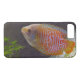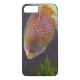 La photo originale de ZoeSPEAK sur cet iPhone 8/7 Coque montre un poisson nain Gourami nageant dans un aquarium. Ce poisson tropical coloré a un corps orange avec des rayures verticales qui semblent irisées bleu clair à la lumière du soleil. Les feuilles verts d'un plante sous-marin peuvent être vus dans un coin de la photo, une partie d'une grande coquille dans un autre coin derrière le poisson, et l'arrière - plan est un gris moyen texturé.