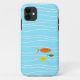 Poisson rétro en orange, jaune et olive sur un arrière - plan bleu