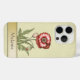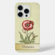 Illustration de pavot rouge mignon sur étui téléphonique personnalisable avec des couleurs chaudes et ruban doré avec nom ou monogramme.