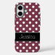 Ce coque iphone présente une conception de points de polka noir et bordeaux préppy. Personnalisez facilement avec votre nom !
