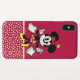 Cet coque iphone dispose de Minnie Mouse tenant des sacs de courses sur un arrière - plan rouge.