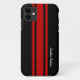 Un cas dur de l'iPhone 5 de Xtreme de la mode d'hommes modernes avec les rayures de emballage rouges et noires sportives. Personnalisez en ajoutant votre nom à cette caisse barrée lisse et élégante d'appareil mobile de voiture de sport juste pour des types.