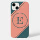 Ce téléphone dispose d'un double cercle géométrique centré en turquoise sur un arrière - plan saumon pâle. Personnalisez le champ de texte à l'aide d'une lettre initiale ou cliquez sur personnaliser pour sélectionner la couleur, la taille et le style de votre choix.