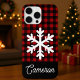 Coques Case-Mate iPhone Red & Black Plaid with Snowflake Custom Name