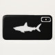 La silhouette d'un requin nageant aux motifs noir et blanc.