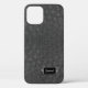 Coque iphone en cuir Faux fait dans un look de peau d'autruche noire. Les graphiques d'une plaque noire et métallique, sur le bas du coque, ont un texte personnalisé prêt à être personnalisé. Choisissez le modèle coque sur lequel vous souhaitez que cette conception soit appliquée.