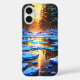 Un étonnant boîtier téléphonique inspiré de dessins animés représentant une rivière gelée dans une forêt enneigée avec des reflets dorés au coucher du soleil. Parfait pour des paysages d'hiver sereins et pittoresques.