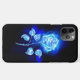 Fleur, rose abstrait de la flamme bleue sur arrière - plan noir. Rose de feu.