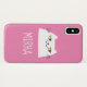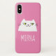 Simple, mignon, dessin animé portrait de chat blanc girly, coque iphone rose avec nom personnalisé.