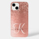 Personnalisez facilement ce design branché de boîtier de téléphone chic avec une jolie parties scintillant brillante en or rose sur un arrière - plan métallique brossé en or rose.