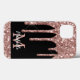 Elégante, moderne, poubelle rose parties scintillant dorée goutte sur mesure nom personnalisé et monogrammed coque iphone. Ce design présente des gouttes brillantes de parties scintillant couleur or rose faux rose sur arrière - plan noir avec personnalisation monogramme initial et prénom modèle texte. Un cadeau féminin parfait pour les filles et les femmes qui aiment des choses glamour plutôt tendance. Si vous avez besoin d'aide ou d'articles correspondants, veuillez me contacter.