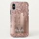 Parties scintillant d'or rose moderne et girly drips nom et monogrammed coque iphone. Cette conception présente des gouttes brillantes de parties scintillant rose rose rose rose rose rose arrière - plan en métal rose avec personnalisation monogramme initial et prénom modèle texte. Un cadeau féminin parfait. Veuillez noter que ce design est imprimé effet photo. Si vous avez besoin d'aide ou d'articles correspondants, veuillez me contacter.