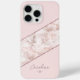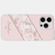Marbre rose pâle contemporain et parties scintillant violet imitation mauve coloré rétro chic rayures motif design. Avec place pour customiser ou personnaliser avec un nom, monogramme ou initiales de votre choix. Belle couverture moderne et cool pour le brancheur tendance et amateur d'art branché, amoureux de motifs artistiques qui veut protéger leur téléphone de la poussière et de la saleté, de l'usure et de la déchirure. Cette conception est disponible en coques de téléphones cellulaires Apple iPhone 6, 7 et 8 Plus, 10 ou X, XR, XS, 11, 12, 13 Mini, 14, 15 Plus et Pro Max. Montrez votre style, regardez à la mode, et sentez élégant avec un design unique sur un accessoire mobile de votre choix.