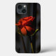 Une coque iphone décorée d'une simple rose rouge, faiblement éclairée.