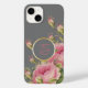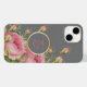Élégant étui téléphonique avec un arrière - plan gris orné d'un beau motif floral. De délicates roses roses aux feuilles verts créent un design charmant qui respire la grâce et la féminité. Au centre, un cercle jaune doré vous permet de personnaliser le coque avec vos initiales