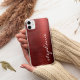 Ce boîtier de téléphone branché est doté d'un arrière - plan de feuille de métal brossé en faux rouge rubis. Personnalisez-le avec votre nom en blanc écriture style brosse script.