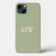 Ce somptueux boîtier de téléphone présente vos initiales monogrammes ou texte personnalisé en blanc sur un vert sage terre.