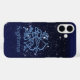 Boîtier de téléphone avec le symbole zodiaque pour Sagittarius en bleu argenté doux, recouvert des étoiles de la constellation, contre un arrière - plan ciel étoilé classé du bleu profond de minuit au noir.