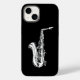 Design avec illustration au charbon de bois de saxophone sur arrière - plan noir ; design élégant simple instrument de musique jazz