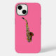 Design avec illustration de saxophone sur arrière - plan rose; design élégant simple d'instrument de musique jazz