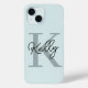 Coques Case-Mate iPhone Script de Monogramme bleu aquatique moderne