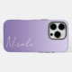 Un coque iphone personnalisé dans un design moderne et doux dégradé violet. La police de script d'écriture à la mode ajoute une touche unique lors de l'ajout de votre nom.