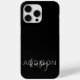 Script Feminine Noir moderne coque iphone de nom personnalisé. Personnalisez facilement ce boîtier de téléphone moderne et élégant avec votre monogramme et votre nom personnalisés.