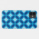 Boîtier de téléphone dans un Shippo japonais traditionnel, ou "sept trésors" à motifs de cercles entrelacés avec un motif de fleurs central - fleurs en blanc et bleu pâle avec un indigo foncé et un arrière - plan cérusé à motifs bleus