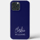 Élégant étui de téléphone monogramme personnalisé moderne avec une typographie de signature minimaliste moderne jumelée avec police sans-serif en bleu et blanc minimal avec des vibes nautiques modernes. Faites-le vous-même en ajoutant votre propre nom monographique et votre propre texte pour créer un design aussi unique que vous êtes.