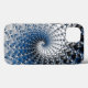 OEuvre fractale en spirale bleue et blanche - est-ce qu'elle remonte ou descend ? Les illusions sont tellement amusantes et font de beaux motifs.