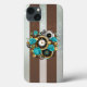 Coques Case-Mate iPhone Steampunk Clock and Turquoise Roses on Striped