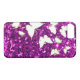 Le cas Girly de smartphone de papillon comprenant de belles parties scintillantes pourpres simulées bling numériquement a imprimé sur la couverture, avec de jolis papillons dans le blanc avec la bordure colorée par or. Couvrez votre téléphone portable dans le style de contact de nature et de bling.