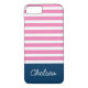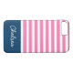 Coques Case-Mate iPhone Stylé rose rayures Nom bleu