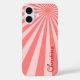 Ce coque lumineux et gai dispose d'un motif de sunburst rose de lignes radiales, avec votre propre nom dans une police de caractères amusante et manuscrite.