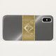 Ajoutez un monogramme sur cette étui téléphonique simple et élégant avec arrière - plan argent et bande or. Le carré et la boussole sont faits en or.