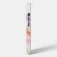 Un délicat bouquet de fleurs de pois sucrés dans les tons pastel doux fleurit d'un vase en verre translucide. Les fleurs vont de la lavande pâle au bleu en passant par les roses et les crèmes douces, créant un mélange harmonieux de couleurs. Les tiges et les bourgeons verts apportent une touche fraîche à l'aménagement. Le vase se trouve au-dessus d'un subtil arrière - plan de lavage à l'aquarelle, améliorant la qualité rêveuse et éthérée du design. Personnalisez avec un nom ou des initiales.