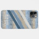Motif en diagonale rétro contemporaine de couleur moyenne et gris clair, marron taupe et bleu foncé sur un arrière - plan dégradé foncé assorti. Avec l'option de customiser ou de personnaliser avec un nom, un monogramme ou des initiales de votre choix. Belle couverture moderne et cool pour le brancheur tendance et amateur d'art branché, amoureux de motifs artistiques qui veut protéger leur téléphone de la poussière et de la saleté, de l'usure et de la déchirure. Cette conception est disponible pour les coques de téléphones cellulaires Apple iPhone 6, 7 et 8 Plus, 10 ou X, XR, XS, 11, 12, 13 Mini, 14, 15 Plus et Pro Max. Montrez votre style, regardez à la mode, et sentez élégant avec un design unique sur un accessoire mobile de votre choix.