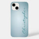 Image métallique en acier inoxydable bleu clair personnalisé Coque-mat coque iphone de texture radiale bleu clair. Veuillez retirer / changer "Christopher" avant d'acheter. Le design est disponible sur d'autres produits.