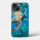 Photo sous-marine d'une tortue de mer nageant dans une eau cristalline juste en dessous de la surface.