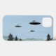 Aquarelle, stylo et encre, dessin au crayon de couleur de trois OVNI soucoupe au-dessus des montagnes.