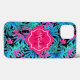 Fille, moderne, élégant motif hawaïen tropical avec des couleurs néon, turquoise, turquoise, vert, bleu clair, feuilles de palmier rose chaud sur arrière - plan noir. Joli design botanique avec un modèle pour ajouter votre nom ou monogramme. Les couleurs de police peuvent être customisées en cliquant sur le bouton "Customiser" pour les outils d'édition. Cette jungle dynamique, les couleurs d'été branchées de la forêt tropicale dessinent un grand cadeau pour les filles. #3327a tropical+palm+feuille, hawaïen, palm+arbre+feuille, turquoise+turquoise+vert, chaud+rose, nom+monogrammed, girly+moderne, été+tropical+motif, Jungle+forêt tropicale, néon+couleurs, exotique, bleu clair+bleu, élégant