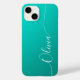 Coques Case-Mate iPhone Turquoise Blanc Élégant Calligraphie Nom du script