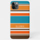 Gardez votre nouvel appareil électronique à l'abri des coups de poing et des rayures avec ce boîtier de téléphone portable motif de couleur rayée de couleur blanche, jaune ensoleillé, orange, bleu turquoise, tan, brun foncé et blanc. Avec la possibilité de customiser avec un nom, un monogramme ou des initiales de votre choix. Belle couverture moderne et cool pour le brancheur tendance et amateur d'art branché, amoureux de style rétro vintage qui veut protéger son téléphone de la poussière et de la saleté, de l'usure et de la déchirure. Cette conception est disponible dans les coques de téléphones cellulaires Apple iPhone 6, 7 et 8 Plus, 10 ou X, XR, XS, 11, 12 et 13 Mini, 14, 15 Plus et Pro Max. Montrez votre style, regardez à la mode, et sentez élégant avec un design unique sur un accessoire mobile de votre choix.