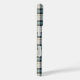 Étui téléphonique avec motif plaid rustique couleur turquoise, bleu marine et crème avec subtile tons vert mousse.