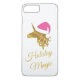 Ce coque amusant et élégant est décoré d'une licorne illustrée de couleur or portant un chapeau de Père Noël rose et le dicton "Magie des Fêtes", ce qui en fait un cadeau de Noël ou un accessoire pour la saison des fêtes !