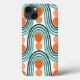 Ce boîtier téléphonique a un design moderne du milieu du siècle des vagues turquoises et des cercles oranges.