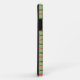 Ce boîtier téléphonique a un design Boho d'ondes vertes et orange sur un champ vert clair.