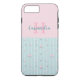 Ce coque iphone sucré présente un joli vert menthe avec des rayures blanches et des fleurs roses sombres sur le fond et un rose pâle avec un motif pois blanc sur le dessus. Vous le personnalisez avec votre nom et votre initiale pour en faire le vôtre.