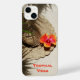 Sentez les Vibes Tropicales de ce casquette de soleil et des hibiscus orange vif fleurissent dans l'ombre d'un palmier coulé dans le sable. Personnalisez facilement ce coque amusant, féminin et chic avec votre nom. Faites un peu de rêve de vacances sur la plage de sable avec vous partout où vous allez. Photo florale originale de JLW_PHOTOGRAPHY