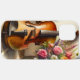 Aquarelle de l'art de l'air représentant un violon penché contre le mur, des partitions et un vase de fleurs en verre.